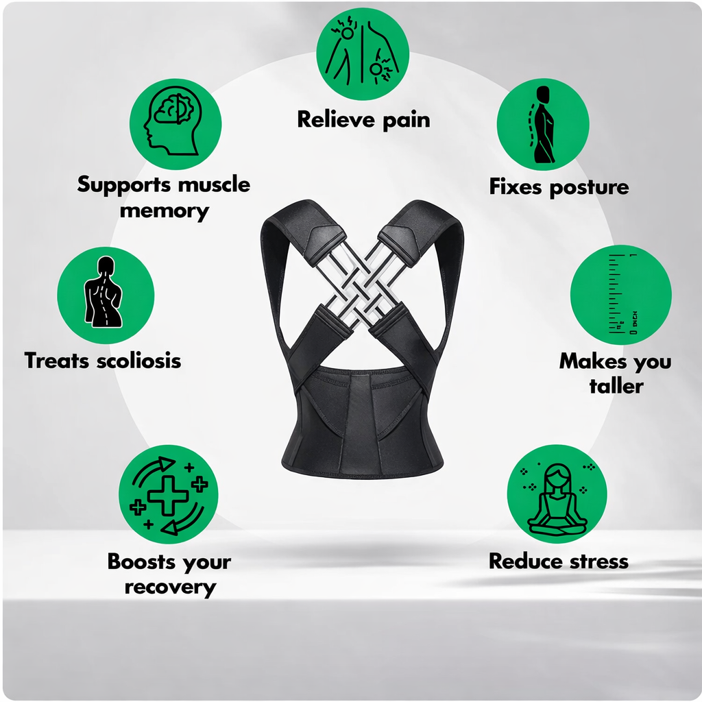 A gentle posture trainer designed to retrain alignment, not weaken your muscles — even if you sit all day or have scoliosis.